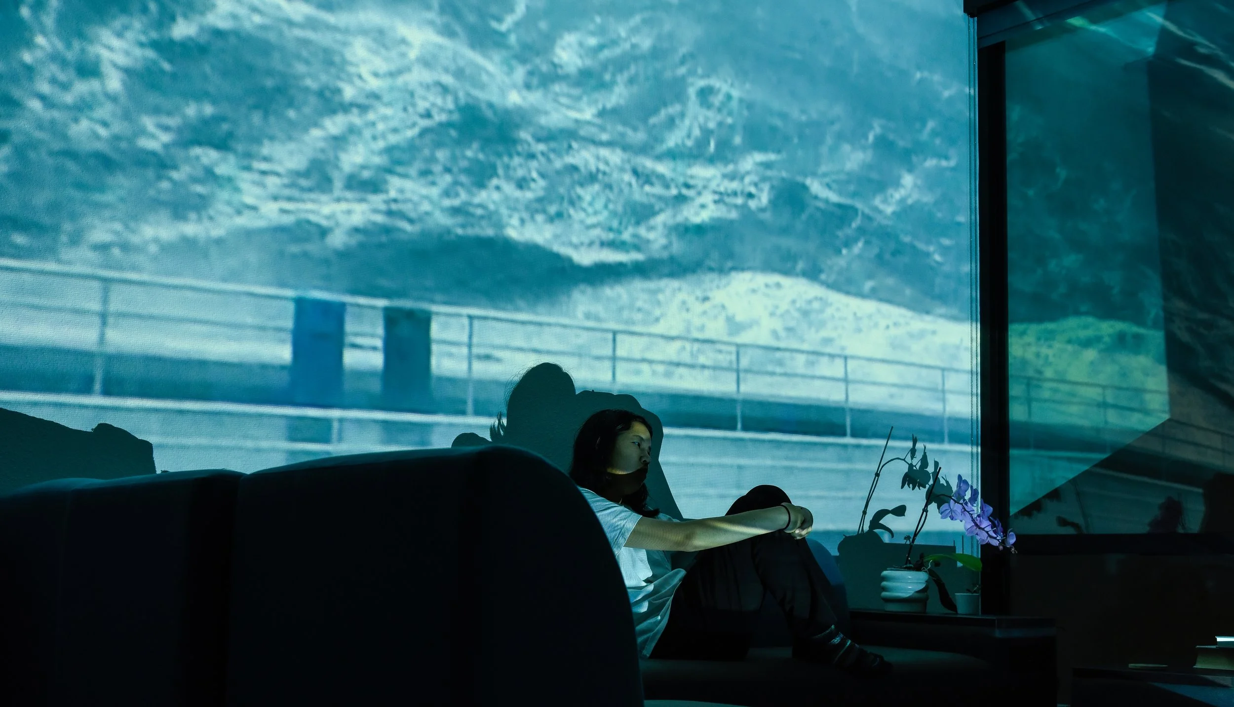 My Ocean is a time based video projected in a living room. It was really important to me that this video was projected in a residential space to mimic a flood in ones home rather than in a gallery space. My Ocean is meant to mimic how the mind can process stress and trauma. Water, an element that is fluid and shapeless, yet so powerful and essential to life itself.